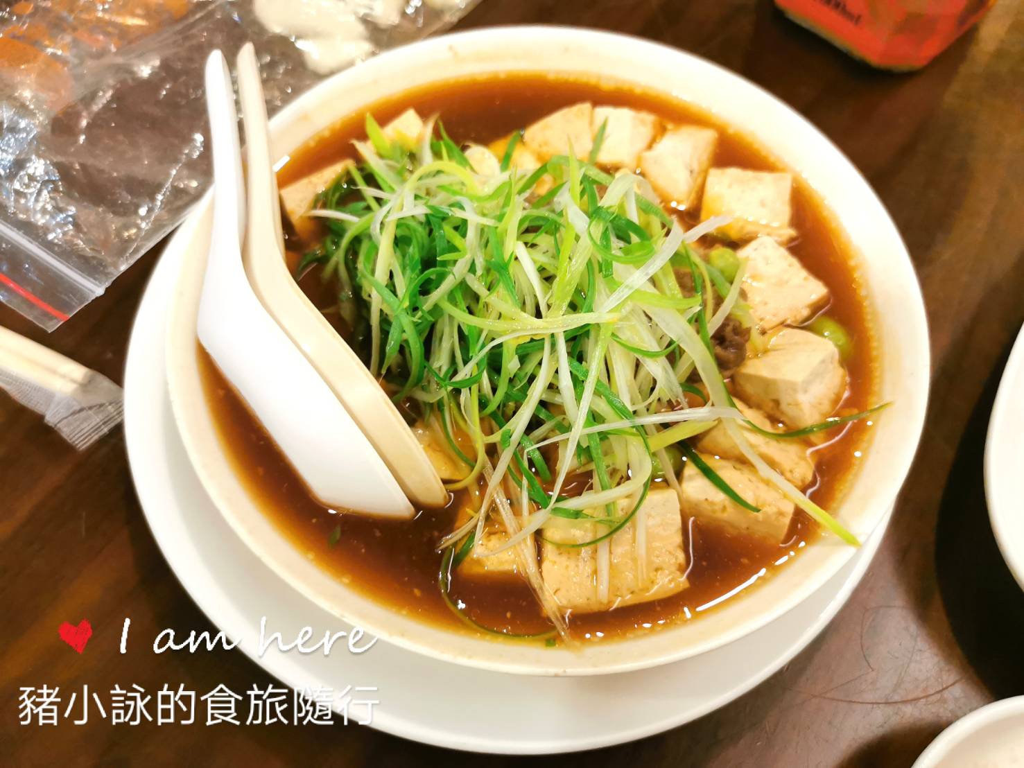 吸滿湯汁的豆腐配上青蔥及絞肉,吃起來很有層次感,也很入味好吃。