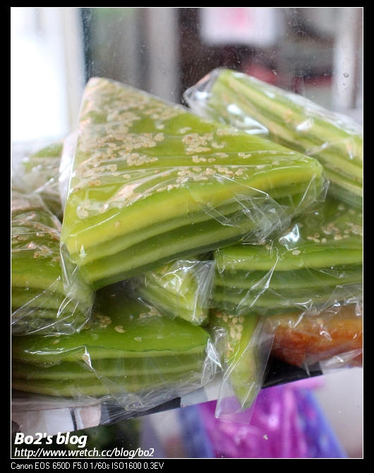 一層一層裡頭夾的是綠豆泥,吃起來軟軟QQ,有點像雙糕潤。