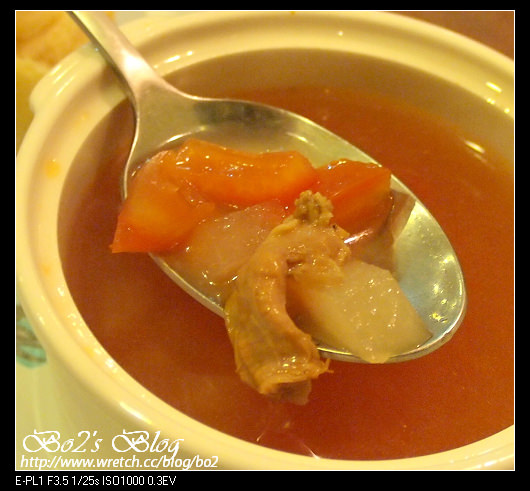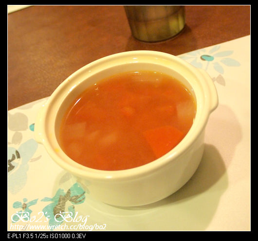 沒想到用蕃茄煮出來的湯,喝起來還頗為清爽的呢。