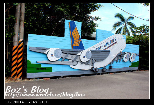 戶外停車場旁,有不少這種自裁木板手繪的維妙維肖的木造飛機看版,