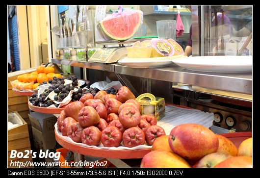 會先忙完手頭上的事才幫你點餐,這時候只能看看櫥窗內的水果打發一下時間囉。
