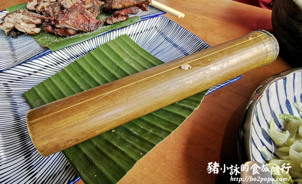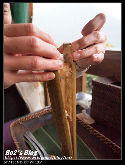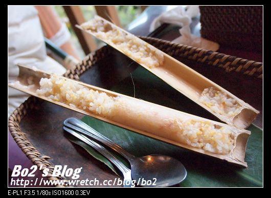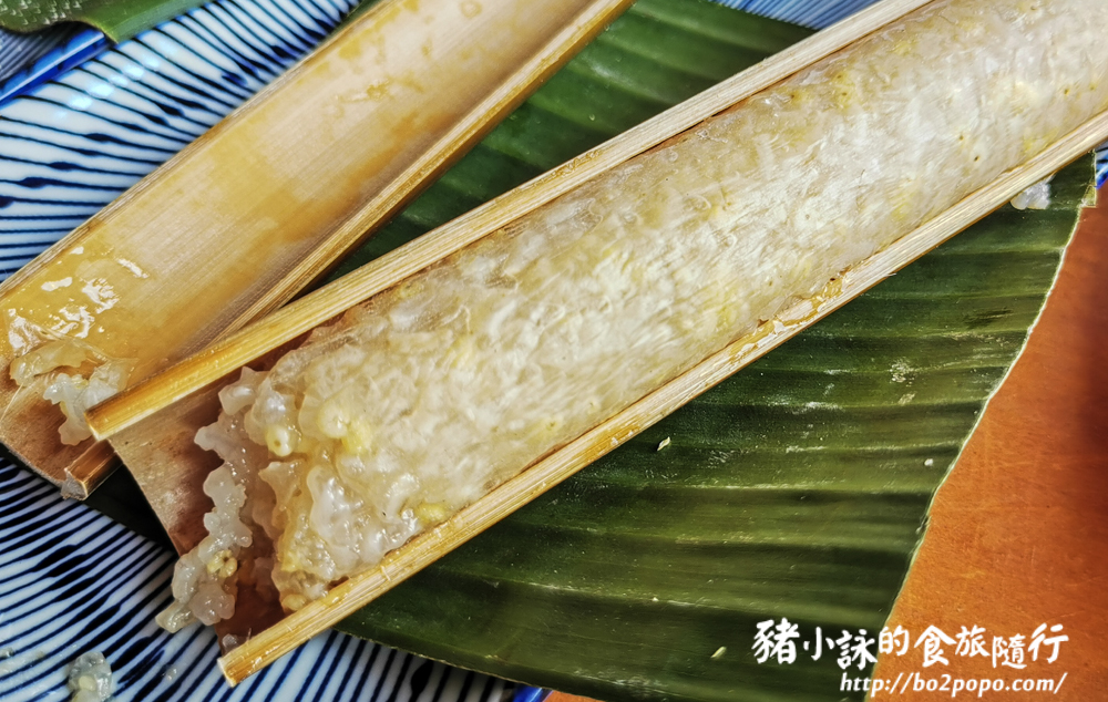 用竹筒炊煮的飯裡面是小米+白米+糯米,素食者可吃,