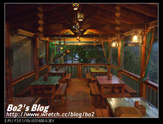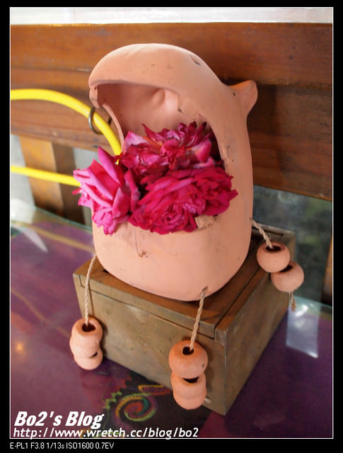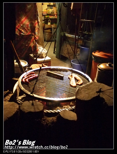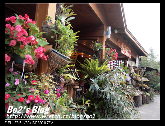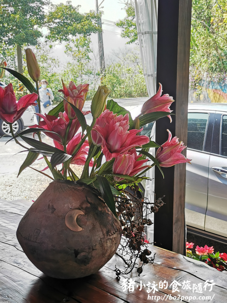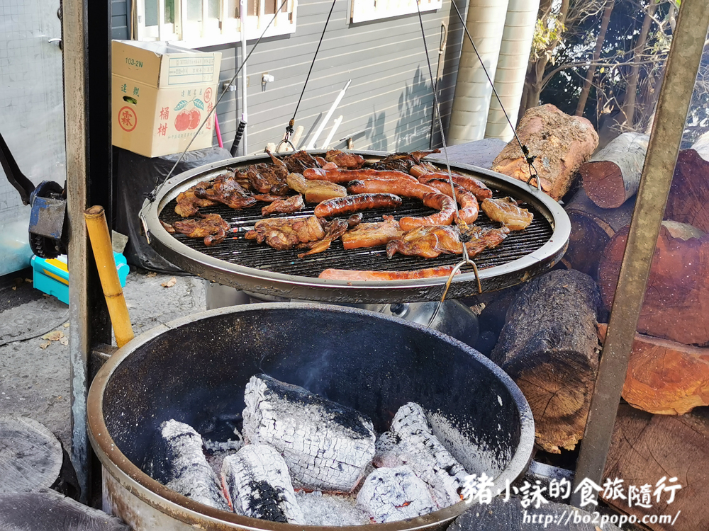 店門口依然種植了不少花花草草,另一側架上傳來了陣陣烤肉及柴香。