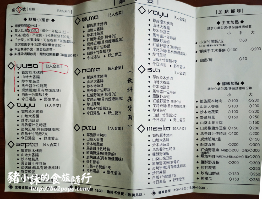 餐廳:嘉義。阿里山》游芭絲鄒族風味餐