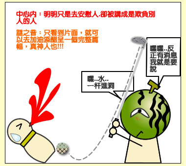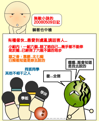 躺著也中槍 DIY胡亂動手做 2008-05-09 ※如有雷同.純屬虛構… 相關 相關文章高雄。美濃》888客家粄條店+美濃白玉蘿蔔股東會半日遊台中。霧峰》林家花園深度導覽-穿越時空,探秘台灣近代史的脈動與建築之美!(林獻堂博物館、萊園、蓉鏡齋、景薰樓)屏東。佳冬》古蹟巡禮:穿越時空,深度探索客家風華!(蕭家古厝、蕭屋洋樓、理學第(豫章堂)、張家商樓、蕭屋聖亭、步月樓、楊及芹祖堂、西隘門、北隘門、楊氏宗祠、摩艾樹)嘉義。番路》欣欣水泥森活園-以水泥為主題的觀光工廠屏東。屏東市》走進南國的耶誕童話:和平教會與夢幻薑餅屋嘉義。阿里山》阿將的家23咖啡館、山林中的秘境台南。東區》狐獴先生-零距離!狐獴陪你用餐的超萌咖啡廳台南。官田》隆田米糕:超人氣的巷弄美味屏東。枋寮》椰們海景餐廳,夕陽、咖啡、蛋糕,感受枋寮海邊的絕美慢活時光 ::職場天馬行空:: 4 Comments 由 小詠 小詠 你也許會喜歡 Different Boss(2) 2008-05-05 加強型擴大機 2008-05-05 全台最高學府 2008-05-06 4 留言 回覆 bo2 2008-05-15 於 02:24:52 有圖有真相…看樣子妳有被妳老公影響到喔..這句話是標準鄉民會說的.^^ 回覆 dajuwatw 2008-05-15 於 00:40:18 有圖有真相果然把事實詳細呈現讚 回覆 bo2 2008-05-10 於 07:55:42 最悲慘的受害者…歡迎你在五月的某一天…回來一趟…你應該知道我的目的是什麼吧..^^" 回覆 小蜜蜂 2008-05-10 於 07:43:37 太好笑了..真奇怪就是有人危恐天下不亂.那張嘴就是沒去講會死一樣,說的是事實就算了..重點是..說的沒有一樣是對的..真服了她.. 發表留言 取消回應顯示名稱 * 電子郵件地址 * 個人網站網址 在瀏覽器中儲存顯示名稱、電子郵件地址及個人網站網址,以供下次發佈留言時使用。 用電子郵件通知我後續的迴響。 新文章使用電子郵件通知我。 Δ