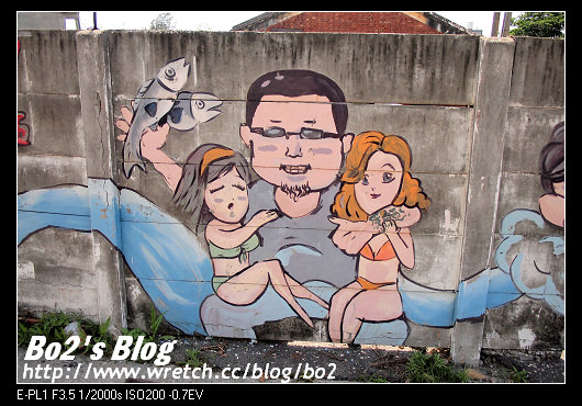 牆上很多圖都蠻有意思的,像這大摳呆左擁右抱的模樣,應該羨煞不少人,可惜想像是美好的,現實上哪可能讓你輕鬆撈魚還可以坐擁美女?