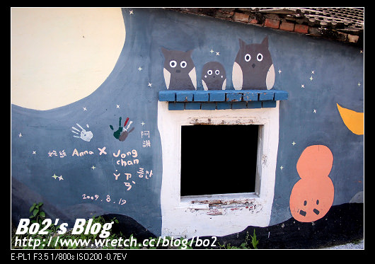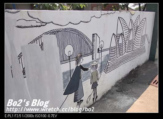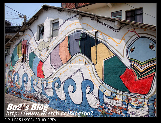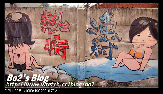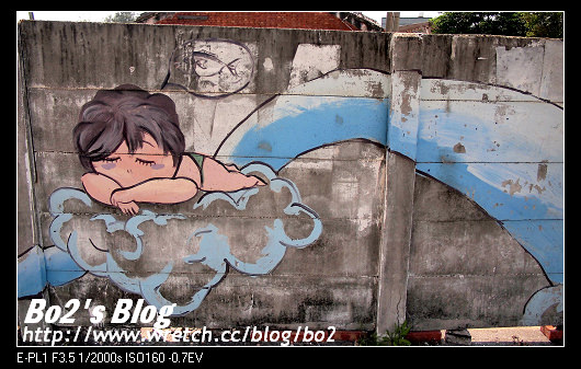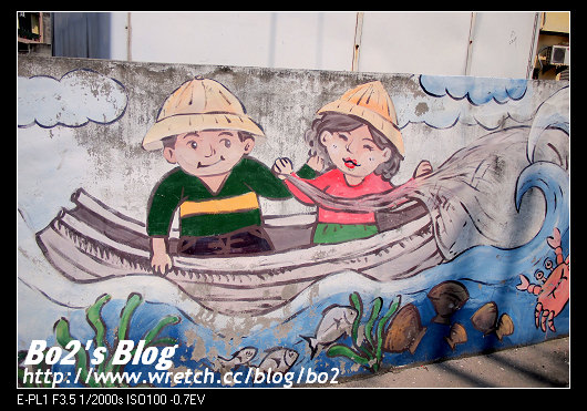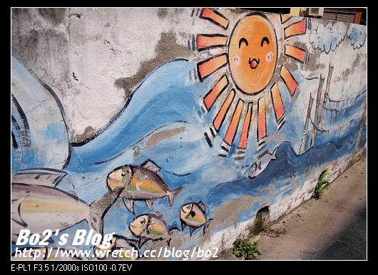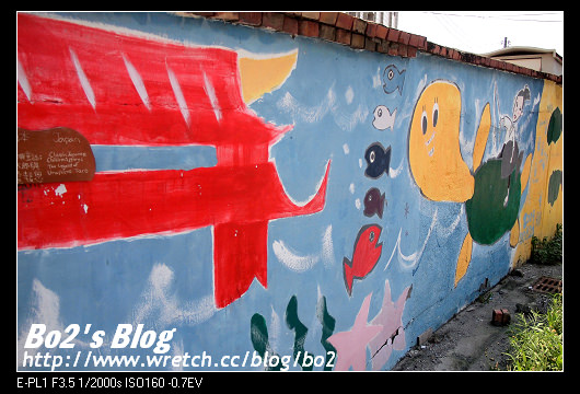 —————–地點:雲林.台西-海口國際彩繪村地址:雲林縣台西鄉中山路299巷35-6號開放時間:全年無休日期:2012/05/07更多照片:20120507-雲林台西彩繪藝術村—————–阿里山遊的第二天,在西螺老街用完中餐後,就跑到台西的海口國際彩繪村,不過從西螺到台西,走台78線,著實還要開好長一段路。起因呢,是有個笨瓜,看了書說適合帶另一半來這地方走走逛逛,不過當天天氣實在太熱,而且帶的是我們這群朋友,天時/地利/人和都不符合,如果比較接近黃昏時分,在夕陽西下時,或許再來這邊會更有FU呢。—————–