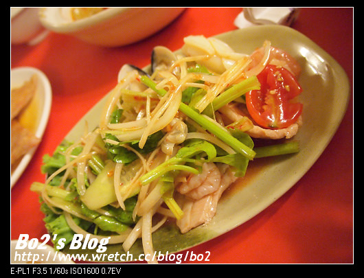 這涼拌海鮮除了花枝外,還有蝦仁蛤蠣等等,都蠻新鮮的,