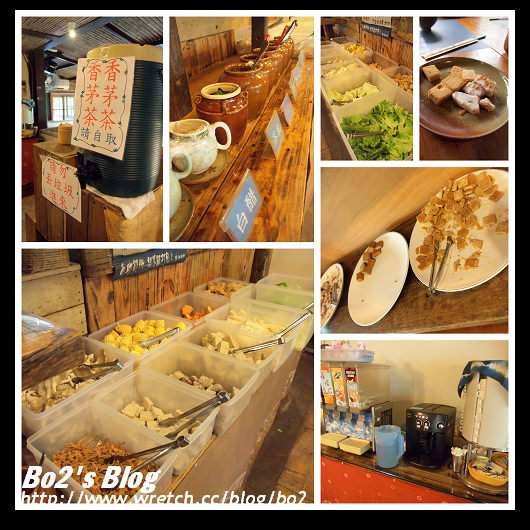 飲料跟甜點,還有蔬食養生鍋的菜及醬料都是自取,都放在自助區,