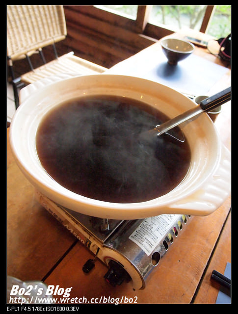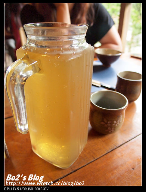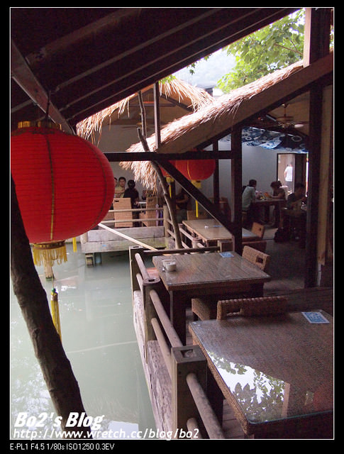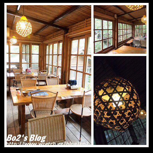 用餐處色調以木頭色系為主,木桌搭藤椅,加上竹編燈飾,倒也蠻雅致,