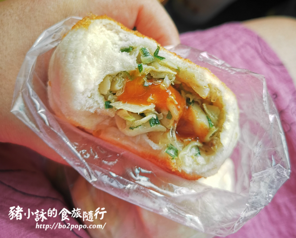 跟小鮮肉比,菜煎包的口味略微清淡,不過加了辣椒醬很也是好吃得很。