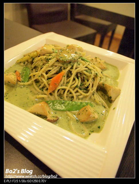 青醬味蠻濃郁的,麵條軟硬度也蠻適中,會越吃越順口。