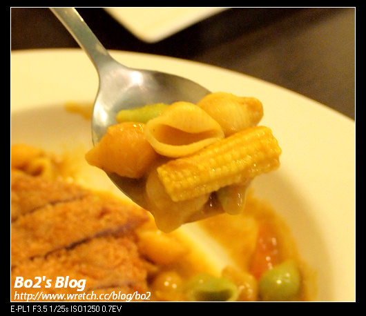 2011-09-27 於 04:32:00貝殼麵跟炸豬排看起來真的不搭