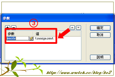 2. 點選dreamweaver下方”屬性”工具區裡面的”參數”鈕