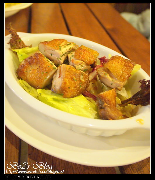 上頭經過迷迭香烤過的雞肉,口感紮實軟嫩,我蠻喜歡這道雞肉的。