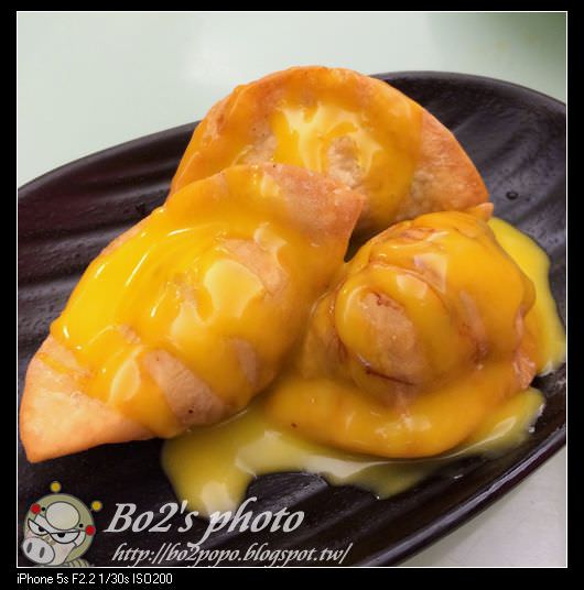 炸的酥酥的外皮,上頭還淋了些許嚐起來甜甜,很似奶油的甜沾醬,