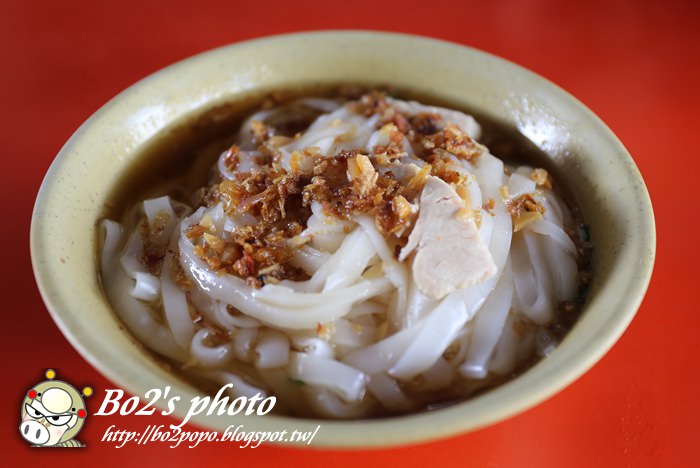 份量不少,QQ的粄條上方還加了肉片/韭菜/豆芽菜/些許蒜泥及油蔥酥,