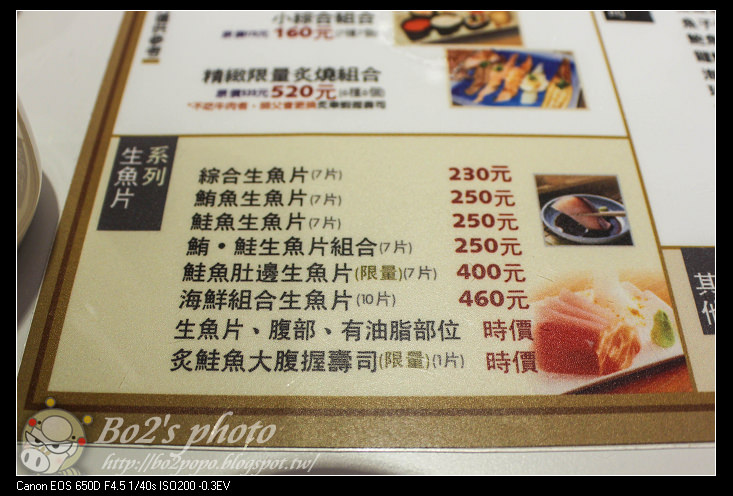 餐點選擇,一般日料有的握壽司跟生魚片當然不能少,