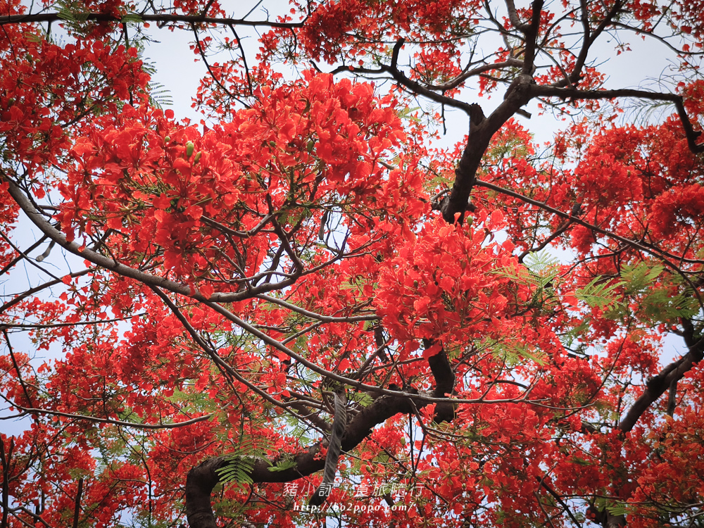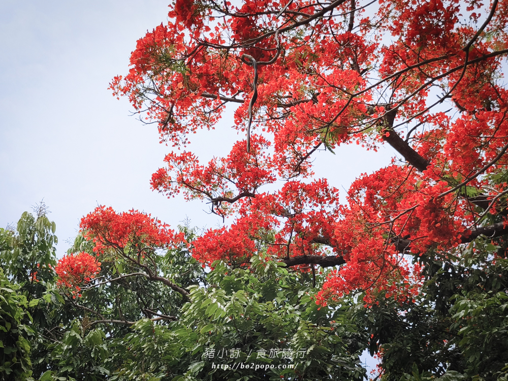 目前正是鳳凰花開正旺之際,花開燦爛彷彿就是要迎接人群的到來。