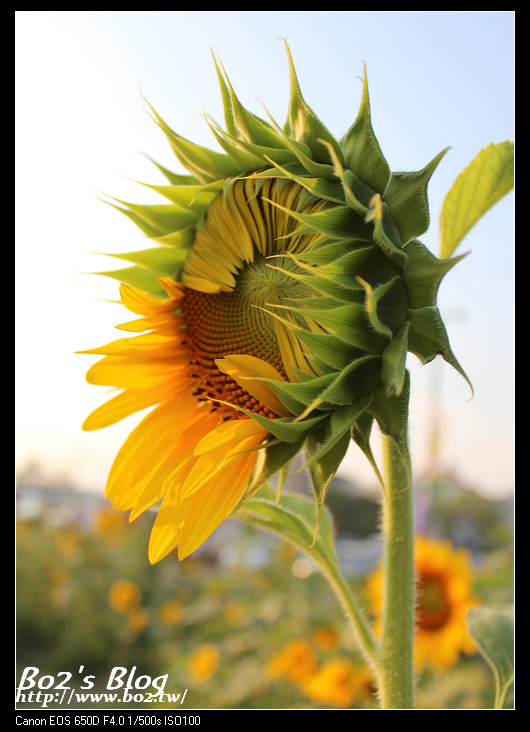 不意外的,向日葵是外圍必備花款之一,並未全數盛開,大部份仍為花苞居多。