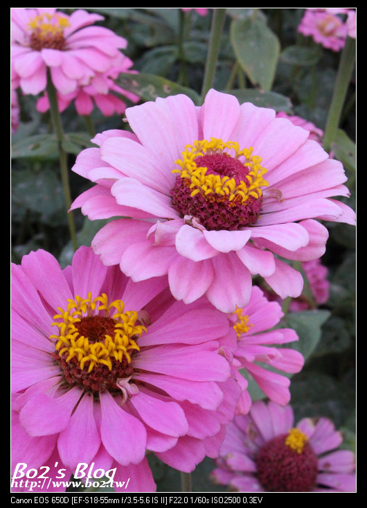 接下來接著是艷麗的紫紅色/白色及橘色等等漸層的各色百日草,