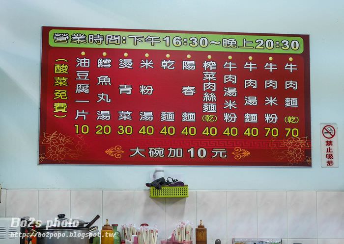 所以有兩種菜單,黃色是白天米粉羹價目,紅色則是晚上牛肉麵價目。