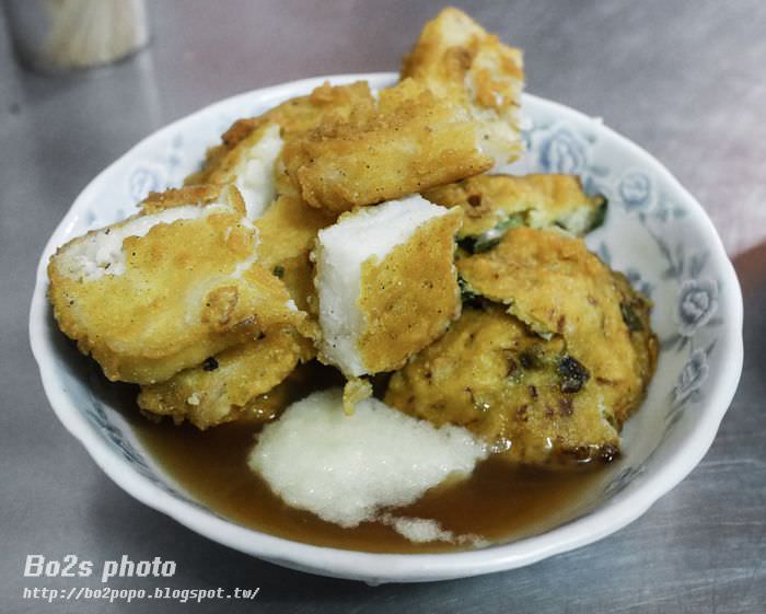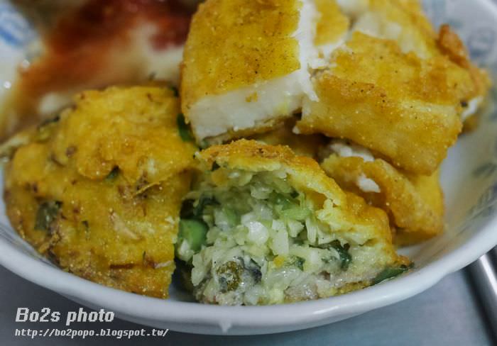 蚵嗲的外皮炸的十分酥脆,裡頭除了蚵仔外,還包了高麗菜跟韭菜,