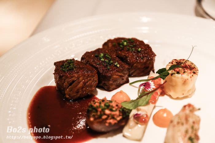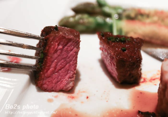 七分熟的雙降牛還帶有點血色,口感軟嫩,佐紅酒醬汁。