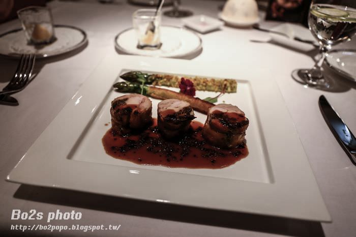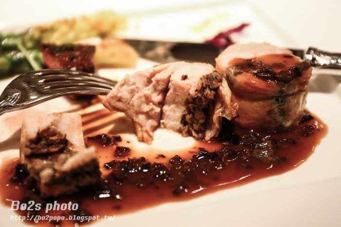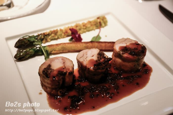 雞肉卷內有包裹鴨肝跟松露,醬汁是用羊肚菌醬汁下去調合而成,