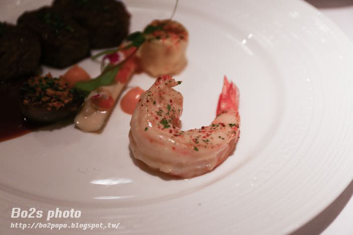 雖然吃不起最高價位的牛排,但還是點了個牛排跟明蝦的雙拼,