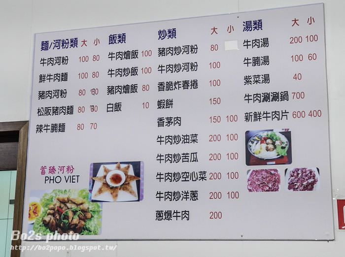 餐點除了一般常見的越南河粉外,還有炸春捲跟炒類,