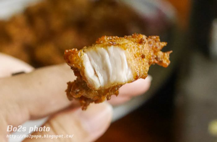 豆乳雞炸的酥酥的,切的小塊小塊,有著淡淡的豆乳香氣,熱熱吃是蠻不錯的。