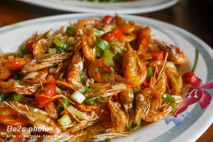 這溪蝦放了不少辣椒跟蒜頭下去炒,頗辣,