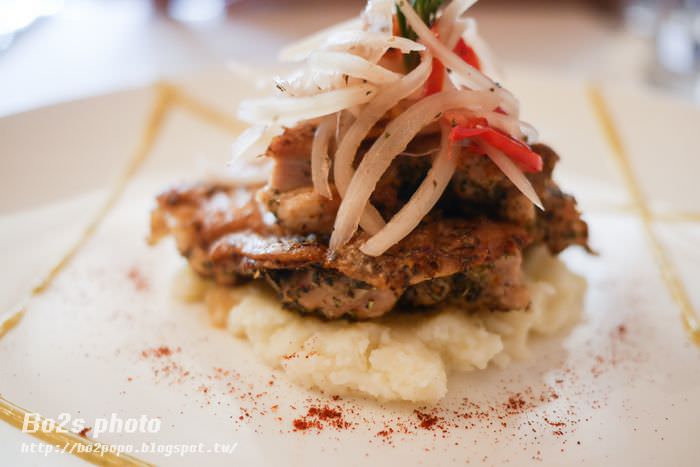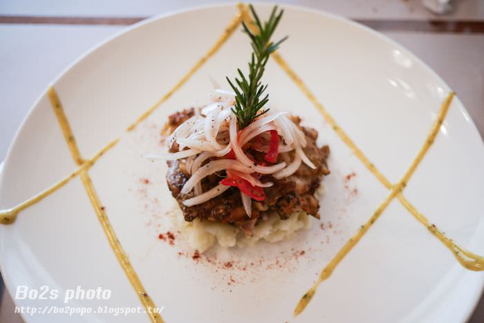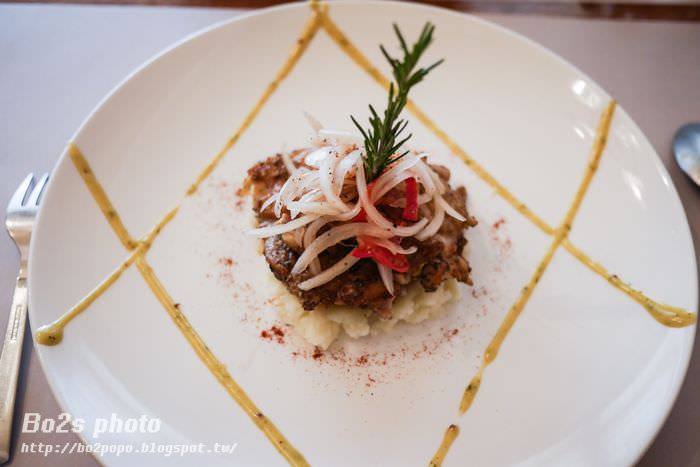 餐點的擺盤算是蠻漂亮精緻,最底下鋪上馬鈴薯泥,