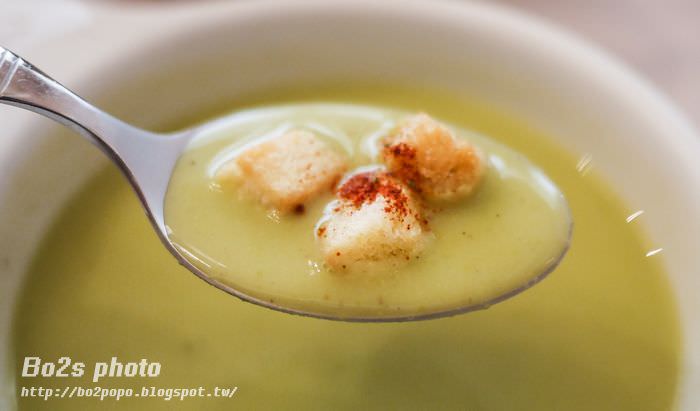 我記得前一回來是南瓜濃湯,這次則是青豆仁濃湯。