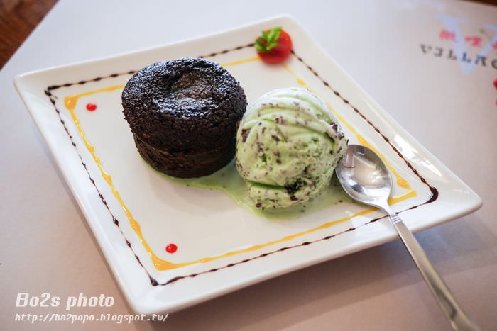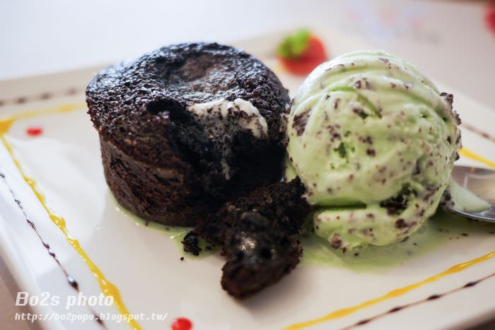 溫熱的蛋糕體內包著巧克力,搭配一旁的薄荷冰淇淋,