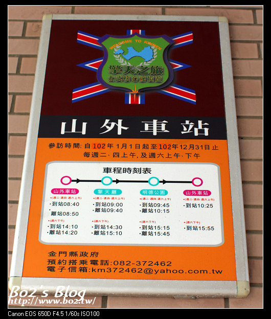 地址:金門縣金湖鎮黃海路90-1號(集合處-山外車站)