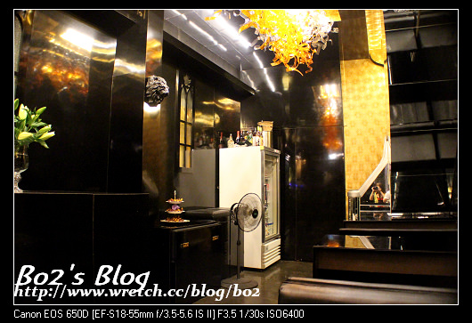 裝璜以黑色系為主,穿插金色,主要是營造出一種高貴奢華的基調。