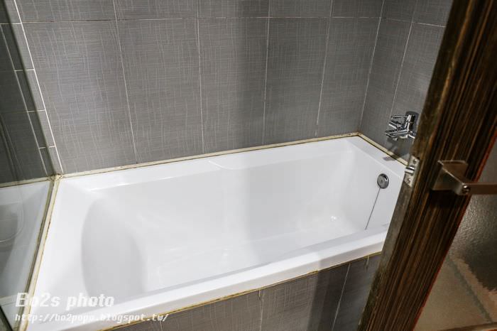 雖然浴缸不算太大一個,但一人洗還算有餘裕,