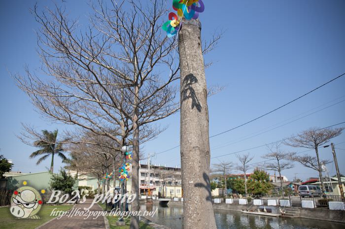 河堤邊的古厝,配合花展,牆上也彩繪了蜀葵花。