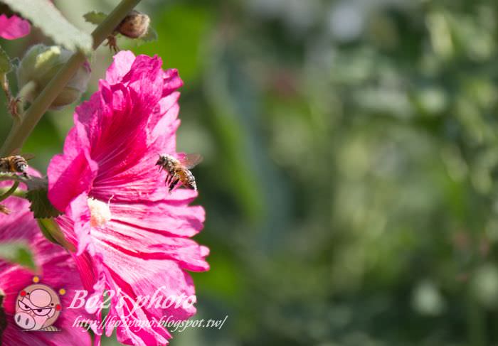雖然嗡嗡嗡在身旁很可怕,但忍不住還是想捕捉一下蜜蜂採蜜的身影。