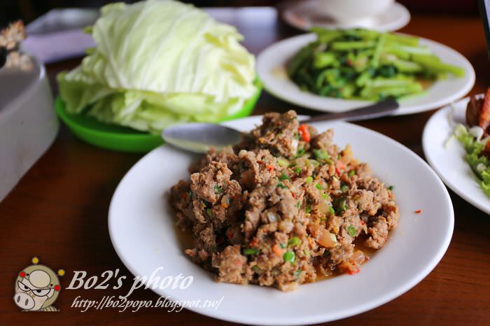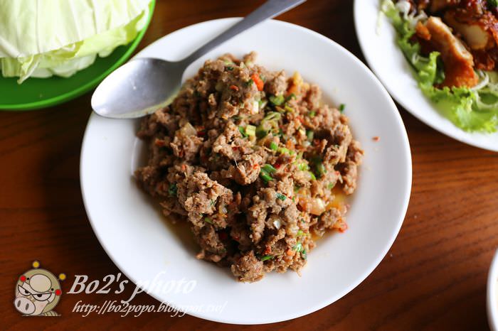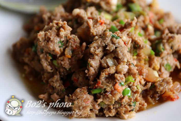 新鮮生豬肉或里肌肉加上剁碎的香料下去炒過,帶有微微的辣度,