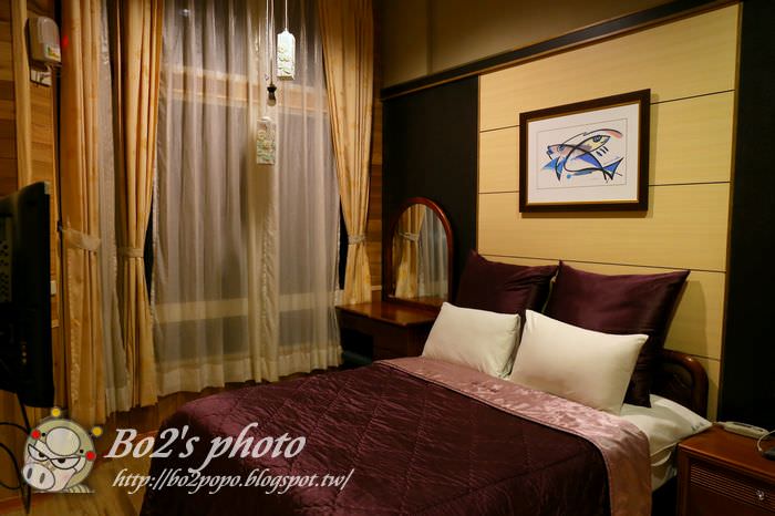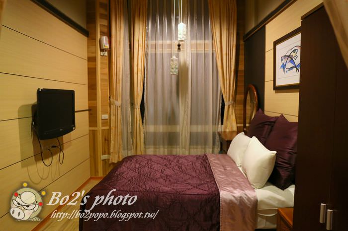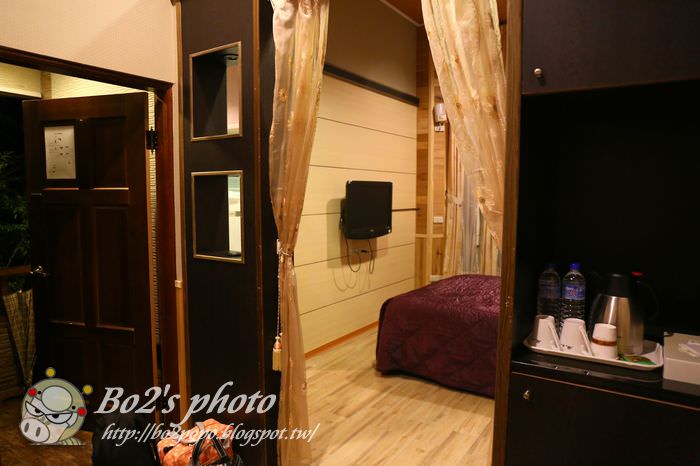 房間內配備:一雙人床/一沙發,中間有屏障相隔,營造出客廳跟臥房相隔的感覺。