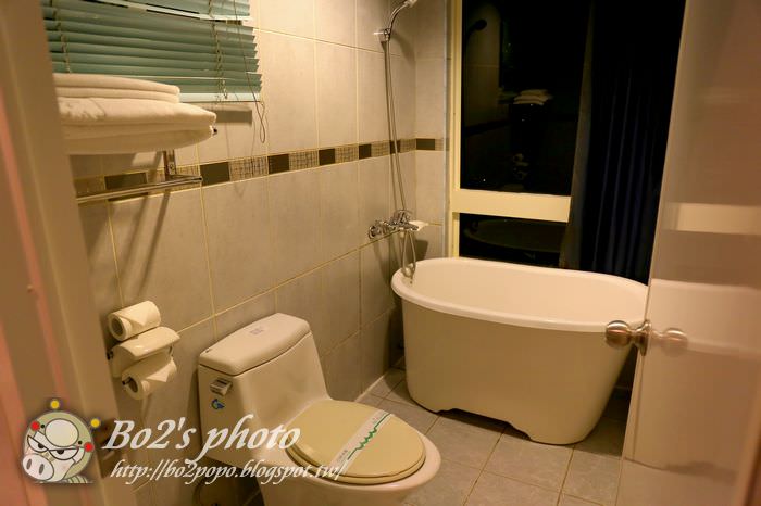馬桶跟浴缸則在浴室內,而且沒有分隔開來,洗完澡地上會濕濕的。