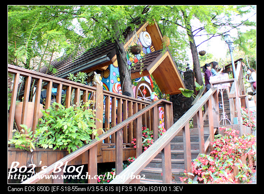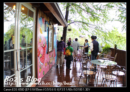 糖果屋的週邊,是個小小的庭院,即使剛下過雨,還是有人在這邊休息聊天,