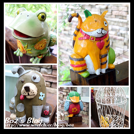 這個庭園最大的特色,就是旁邊的柱子上,都有可愛的小動物木雕,