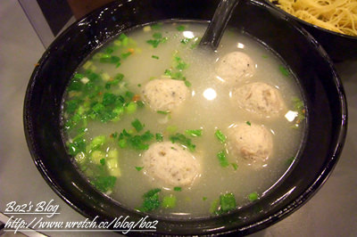 這丸子果真是不同…雖不像”食神”內誇張到可以打乒乓(誤)…不過的確是挺Q彈的…一口咬下..丸子內的鮮甜的湯汁及胡椒味都迸了開來..