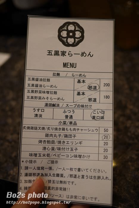 看PTT板上的推薦,公園北路上的”五黑家拉麵”據說頗不錯,