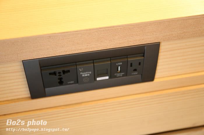 書桌旁有萬用插座/網路孔/USB孔等等,很方便使用。
