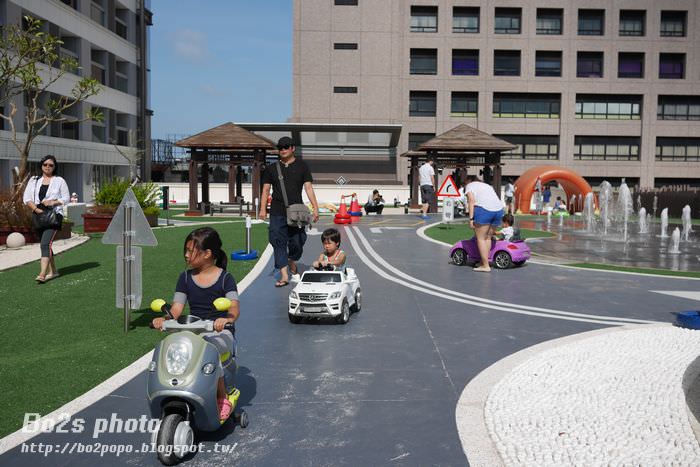 寬廣的戶外空間就佔地500坪,規劃有涼亭區/兒童賽車跑道區/沙坑區/噴泉/按摩步道等等,